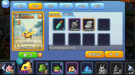 首先玩友们在看过上一期的攻略以后,就知道在小精灵菜单里面的第二项就是给小精灵升级的操作界面了,我们点开可以看到,小精灵升级非常简单,只有两种升级方式一种是通过玩友们获得的精灵口粮来升级,这个提升等级的速度非常的快,第二项提升等级的途径就是通过吞噬玩家平时闯关卡获得的材料进行升级,这个非常的缓慢,而且材料还有其他用处,所以不推荐各位使用。